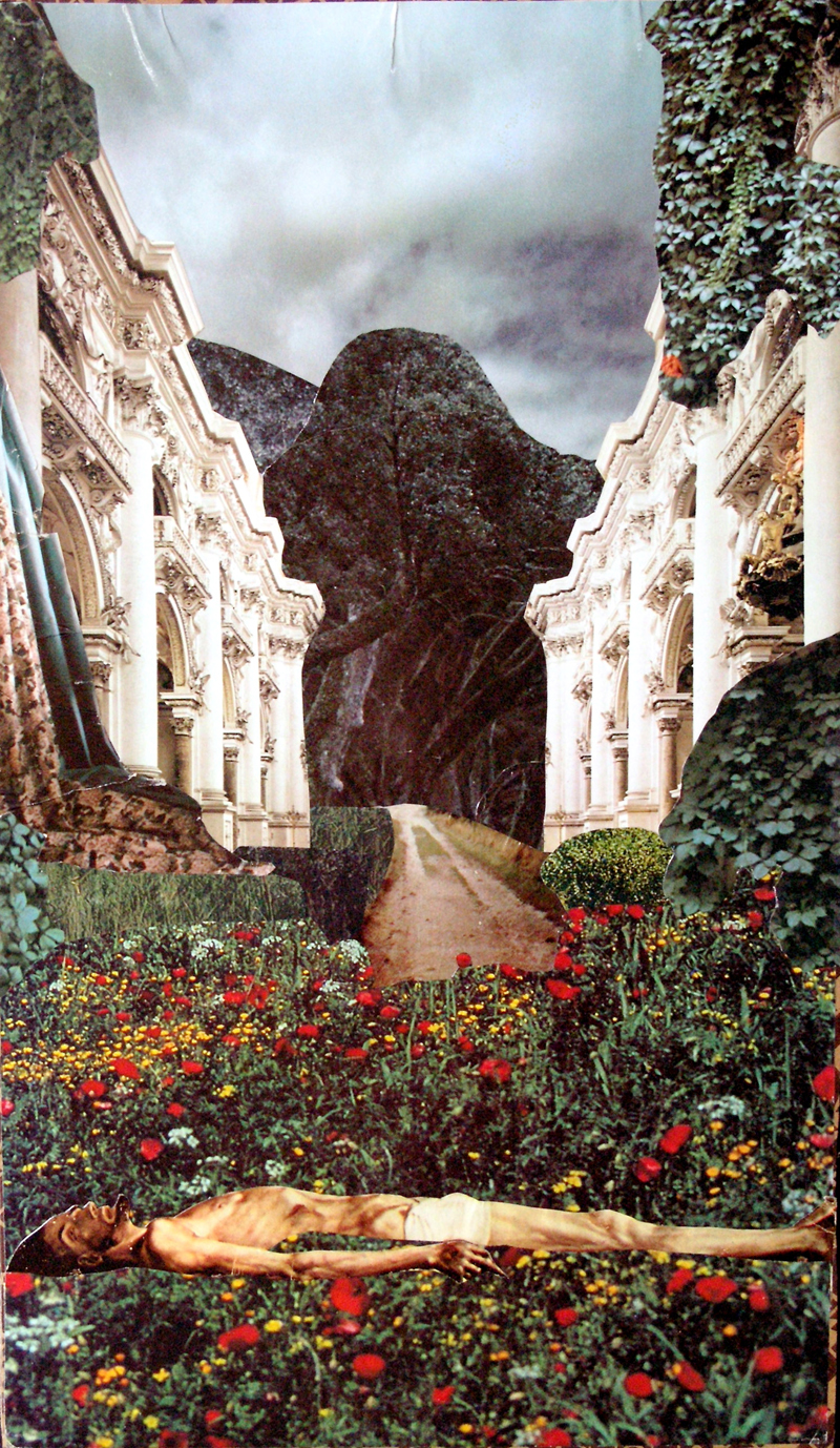 Marco Modi | Report-Collages | Primi collages anni 70 | Sepolcro all'aperto